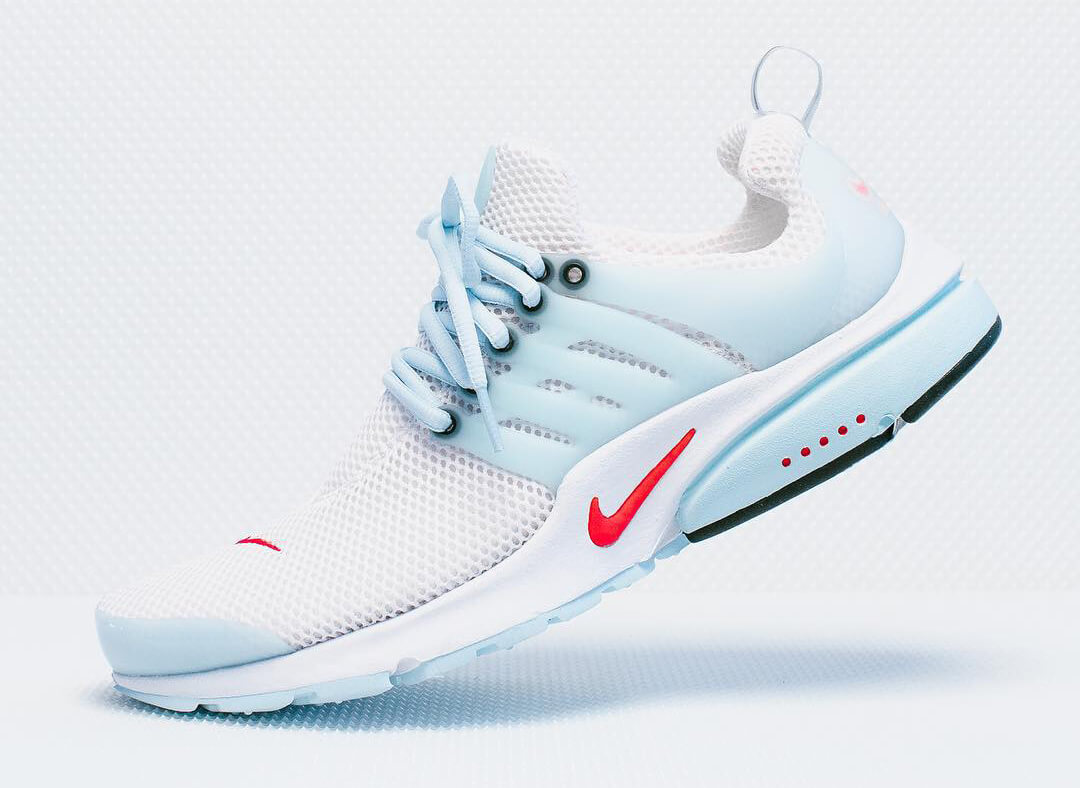 The Nike Air Presto traditionally consists of a neoprene or mesh upper, with a plastic cage around the forefoot and heel area. There is a Nike swoosh on the midsole and toe, and the Nike Presto logo can be found on the tongue. The shoe has a minimalistic design that is mainly focused on comfort, hence the thin breathable upper and the one-piece tongue, which allows the shoe to work as a slip-on. However, the Nike Presto’s sole does not provide the same comfort as the rest of the shoe, as it features a small air unit in the heel that is encased in stiff foam.