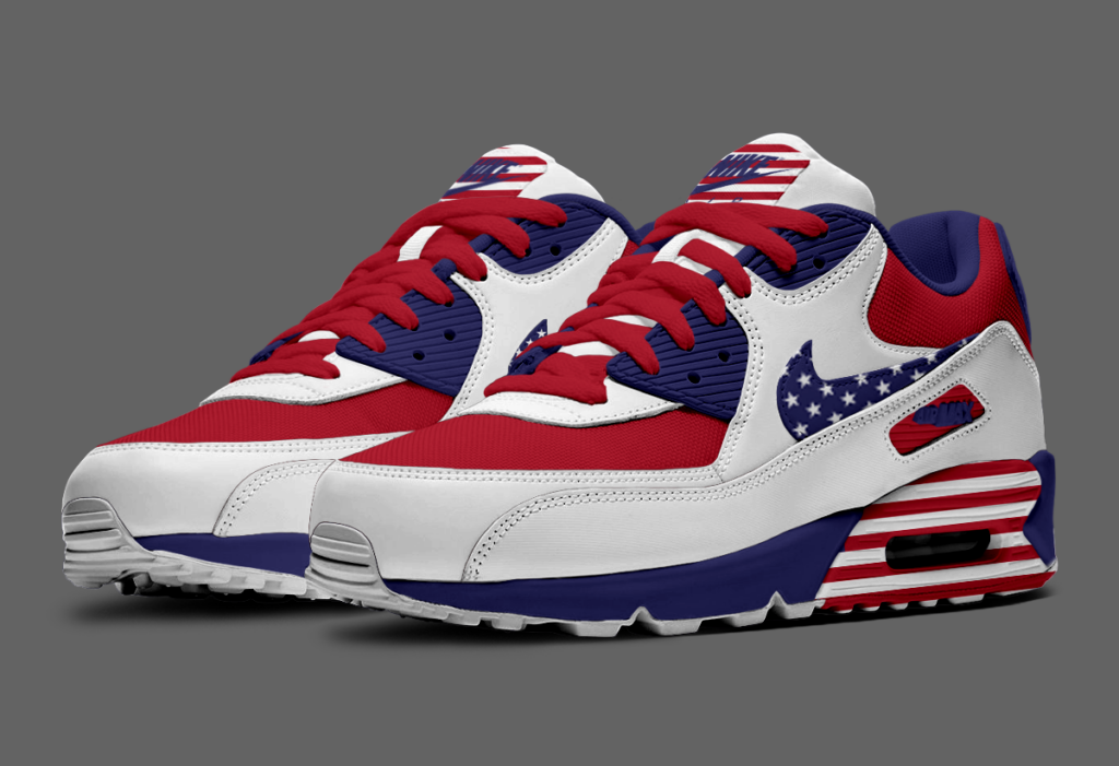 One of the most iconic silhouettes over these years is the “Nike Air Max 90”, clearly written in gold in the history of sneakers. Nike celebrated with us on every occasion by releasing collections of their beloved pairs, the Chrismas-Themed, or the Halloween-themed packs. Nike also dropped some designs that are perfect for the 4th of July, they include the usual colors such as navy blue, red, and white. However, Nike did not officially release any Air Max 90 designs with a USA flag pattern on the shoes’ elements. So today we are exploring this creative idea which was presented by concept artists. Even if it is not close date to the day of the American Independence, it would be perfect to wear during the Back-to-School season. It will definitely look unique and eye-catching sneaker.